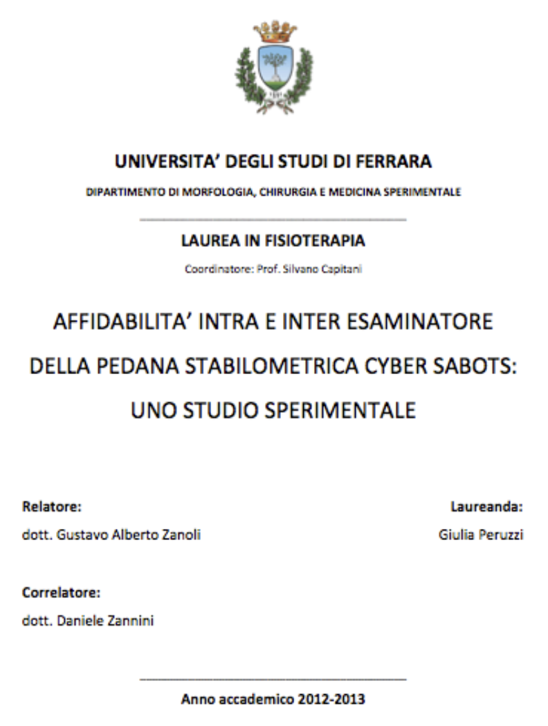Libro M.Rossato et All : Stabilometry Standard Guideline 2011-2013 during Clinical Practice