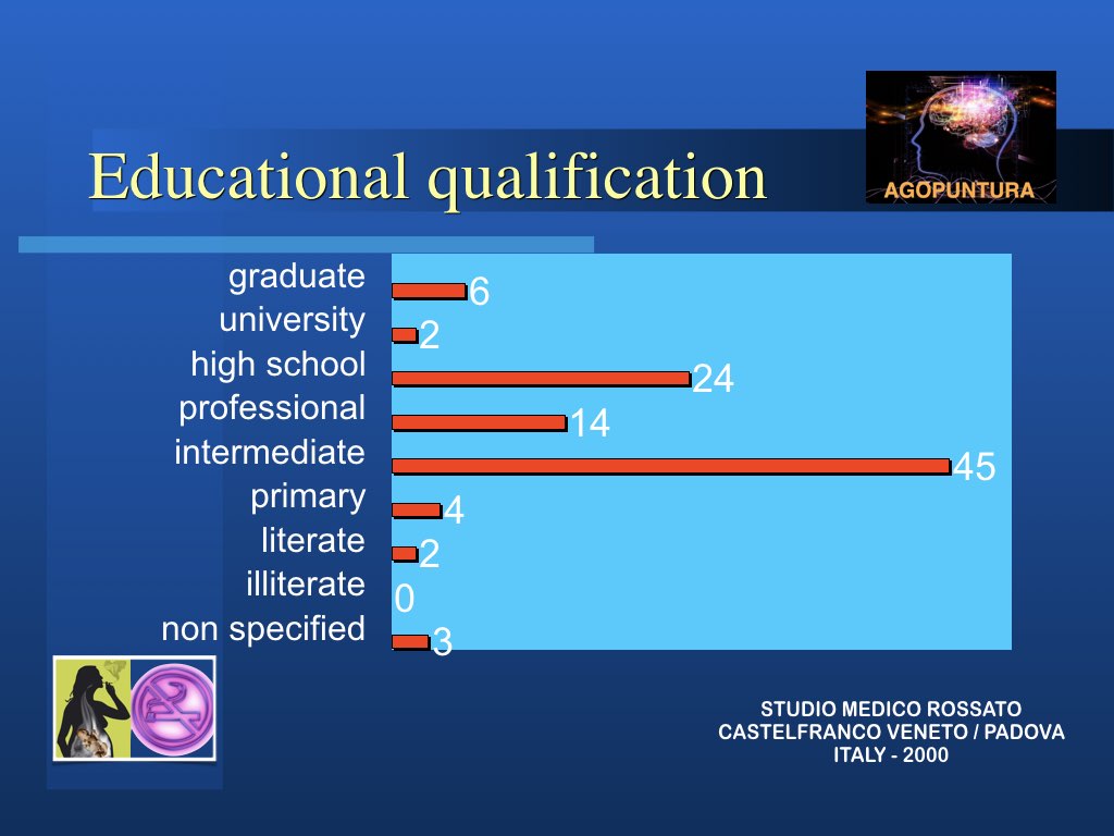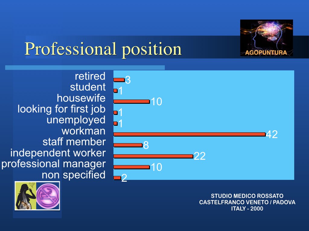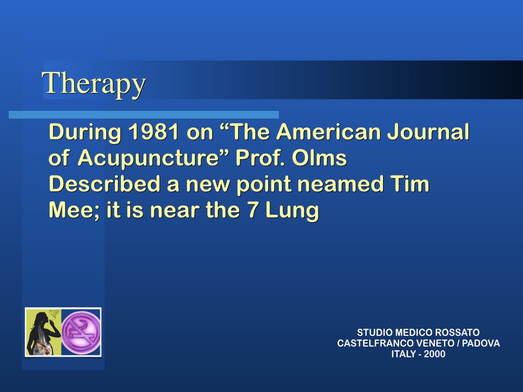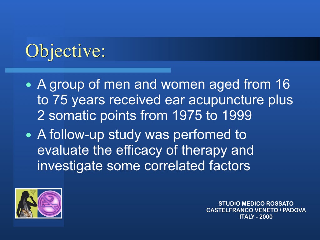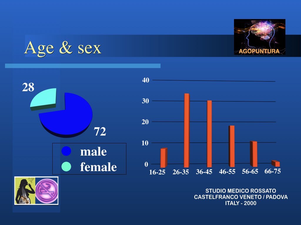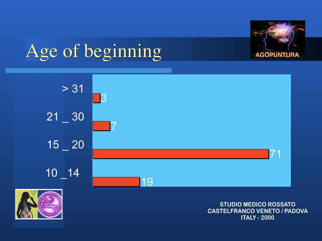 In realtà l’aspetto principale nella modalità di approccio al problema tabagismo per una possibile soluzione è che non si sta trattando di una intossicazione ma di persone intossicate e quindi solo curando la persona si possono trovare le corrette soluzioni. Molto spesso anche le persone di forte volontà, difficilmente riescono a liberarsi da sole del vizio: abbiamo visto invece che anche chi non è convinto di farcela e chiede aiuto impegnandosi, riesce spesso a risolvere il suo problema con l’agopuntura.