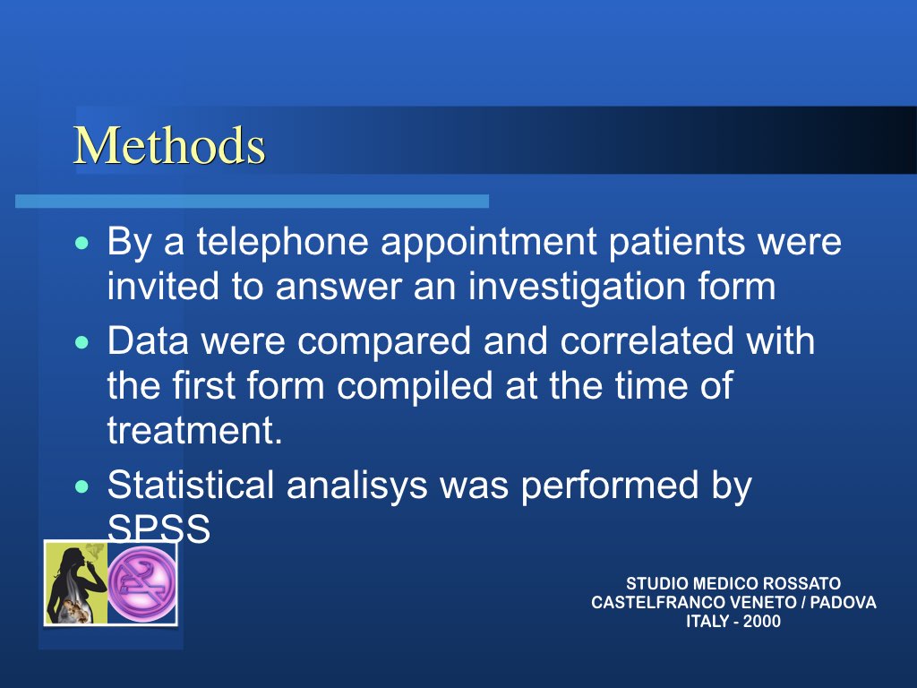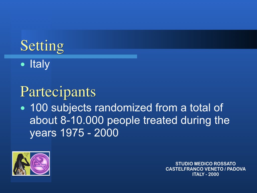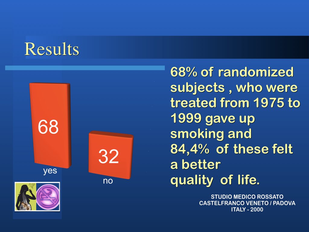 RISULTATO STATISTICO: 68 % dei pazienti hanno smesso di fumare nel follow-up a 20 anni