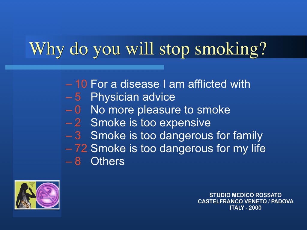 3. la socialità: il rituale della sigaretta entra a far parte della personalità, ovvero dell’esteriorità di una persona, ma lentamente diviene parte dello stesso io e quindi è difficile abbandonare il fumo.