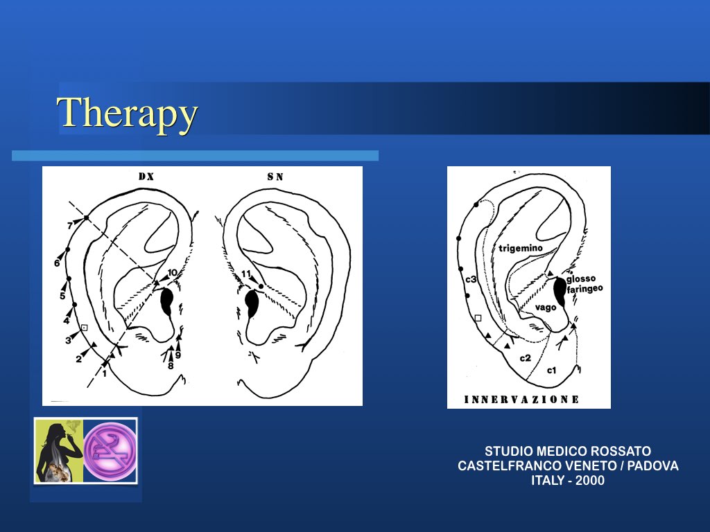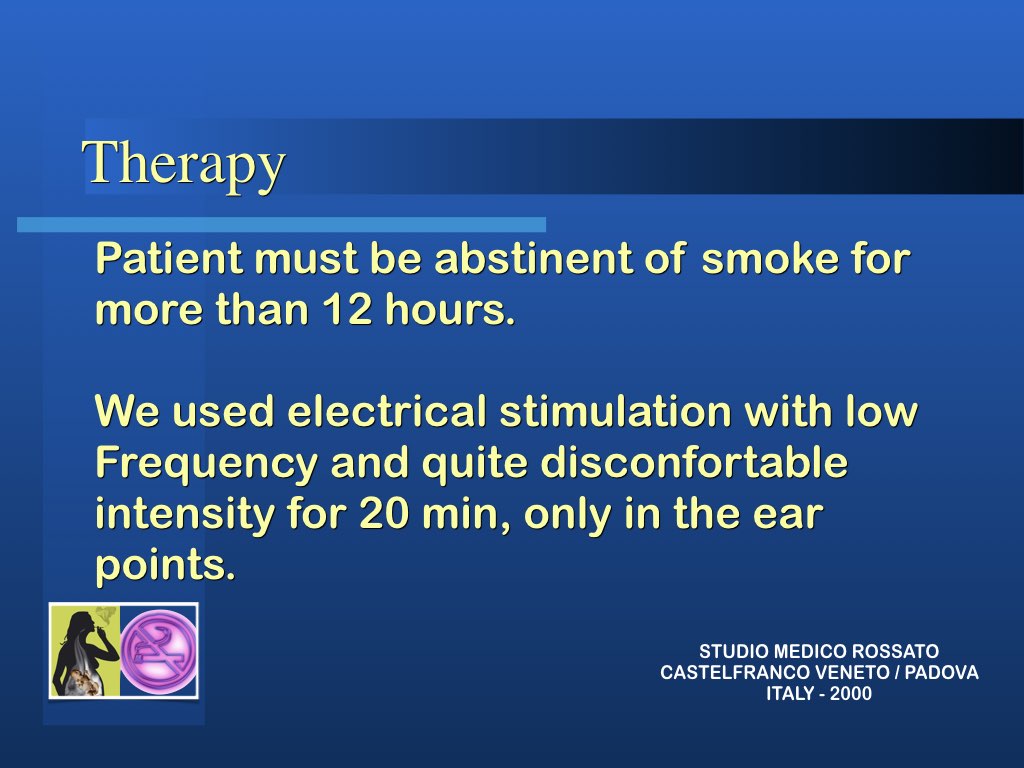 Prima di sottoporsi alla terapia è necessario stare almeno 12 ore senza fumare, meglio se per un tempo più lungo, altrimenti non si può procedere alla esecuzione del metodo. Infatti solo se l’intossicato è in carenza si manifestano appieno alla detenzione i punti auricolari. Bisogna poi stabilire l’emisfero cerebrale dominante, infatti è nell’orecchio di questo lato che si infiggeranno gli aghi principali.