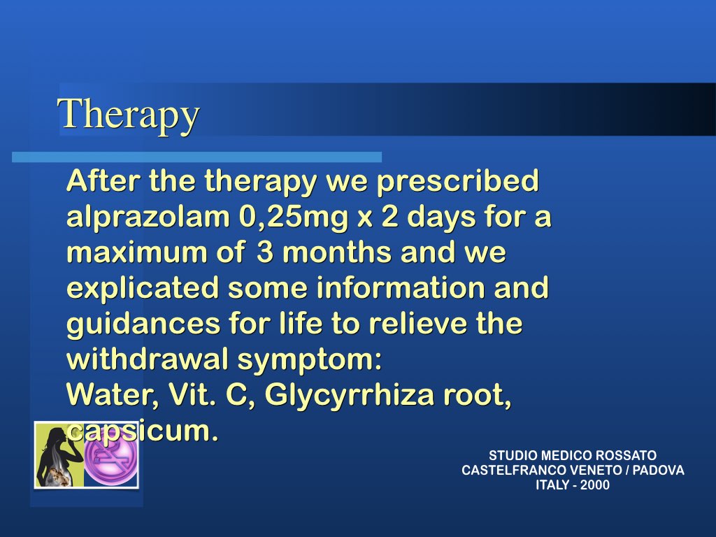 Finita la stimolazione si tolgono gli aghi e si passa ad un colloquio importante in cui si spiegano al paziente i metodi per superare i momenti di difficoltà; si associa una terapia farmacologica di sostegno al problema dell’ansia e si impostano le “regole” comportamentali.