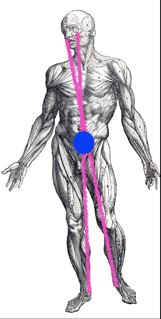 Questa catena miofasciale parte dalla coppia piede-caviglia di un lato, sale all’articolazione del ginocchio, poi all’articolazione dell’anca, interessa il bacino, infine scende dal lato opposto.